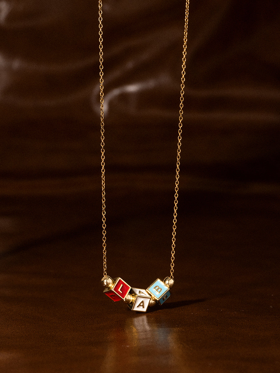 Personalized 3-Letter Rainbow Enamel 18K Gold Necklace