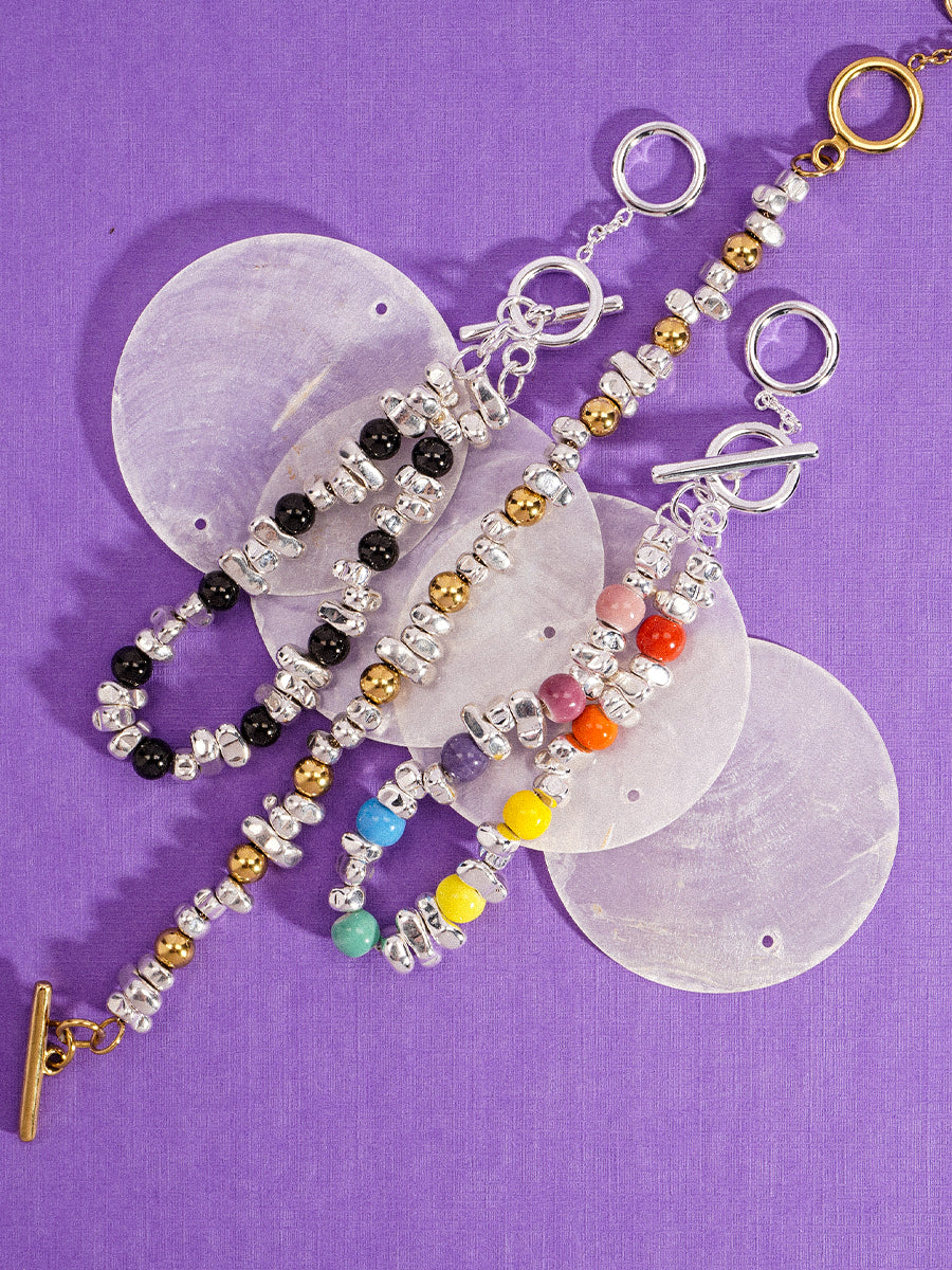 Silver Hematite 18k Gold Bracelet